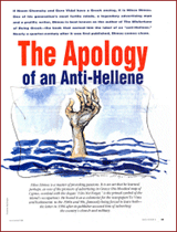 Let me say up front that I feel no guilt, and that I use the term "Apology" ironically-with Socratic irony, if you will. And I deliberately omit placing quotation marks around the word anti-Hellene. They are unnecessary. I consider the term an honorable title, won by many worthy Greeks. As Nietzsche once wrote (I don't remember where and haven't been able to find it again), it was the anti-Germans who proved to be the best Germans.